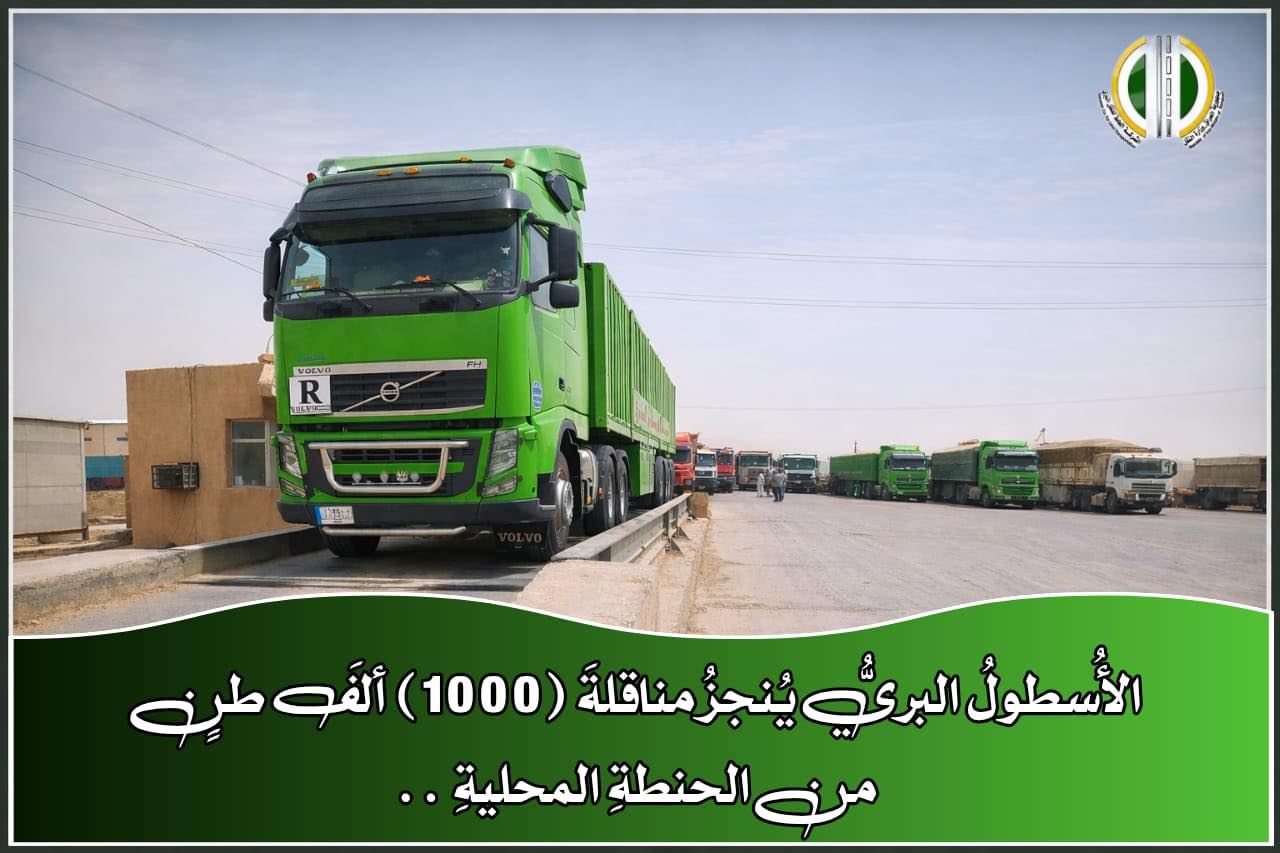 إحدى تشكيلات وزارة النقل صباح اليوم بنقل ِحمولة الباخرة (WESTERN TOKYO) المُحملة بمادة الرز المُكيس الامريكي ..